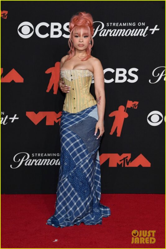 The red carpet game has been strong in 2025. Ice Spice made an appearance on the 2025 MTV VMAs red carpet, wearing a vintage Ralph Lauren ensemble, showcasing her appreciation for historical fashion pieces. The Bronx rapper didn’t disappoint when she walked in wearing a lime-green corset, a mixed patchwork skirt, a pastel pink updo, and the obligatory minimal studs.